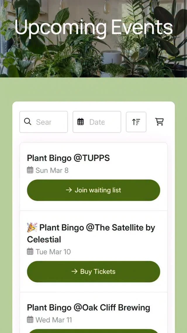 We’re taking Plant Bingo all over DFW. Every event has limited spots, and they go fast so don’t wait to secure your seat. Tap the Shop button to see all upcoming events and grab your tickets!
